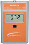 The Model 6.4 features an Integral Sensor and function is to calculate Vitamin D3 IU per Minute International Units (IU) of natural vitamin D3 (converted from 7-DHC) per minute of ultraviolet B exposure.