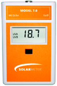 The Model 7.0 features an Integral Sensor and applications include MED/Hour, lamp/sun output, estimate exposure time, acrylic shield transmission, eyewear UV block comparison.
